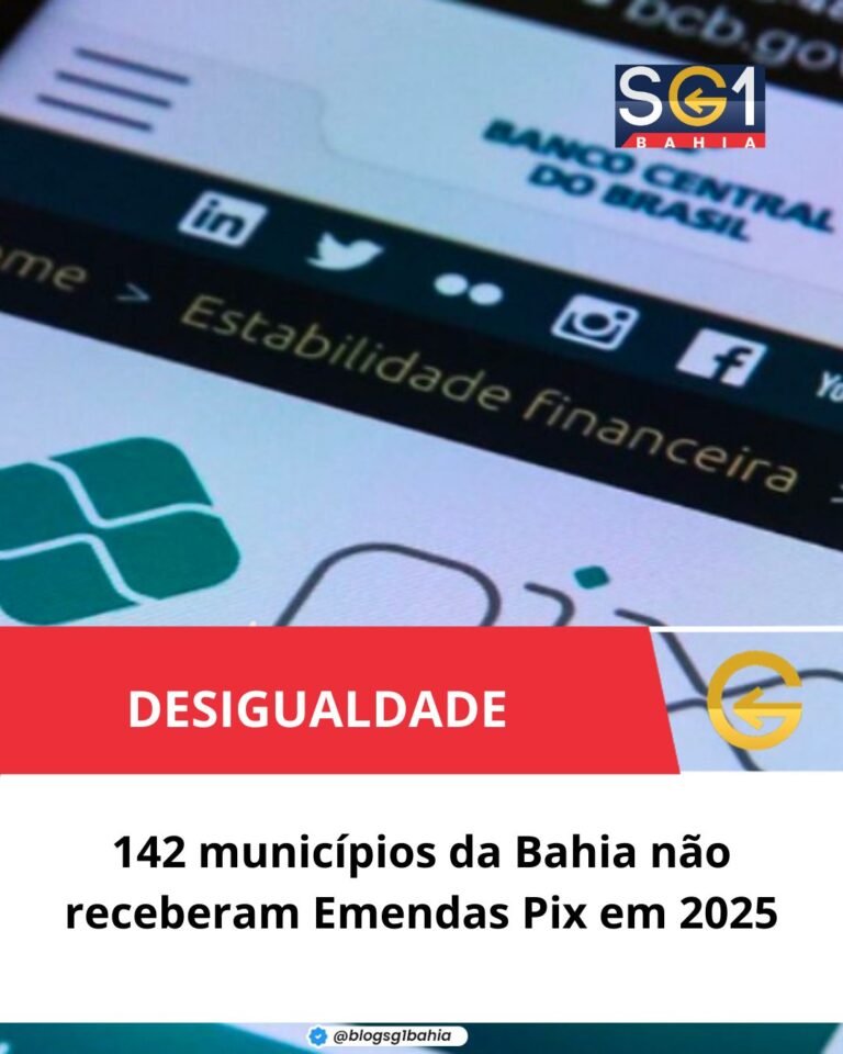 Em 2025, 142 dos 417 municípios da Bahia não receberam qualquer valor por meio das transferências especiais, modalidade conhecida popularmente
