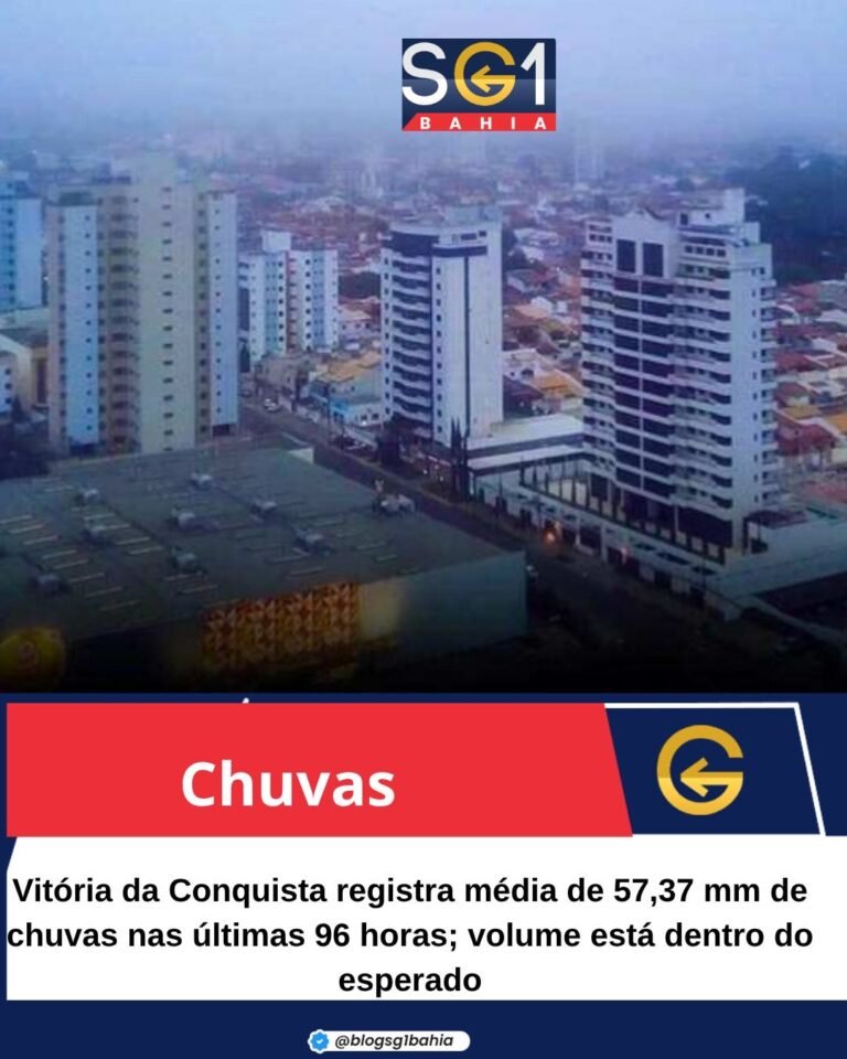 O município de Vitória da Conquista registrou, nas últimas 96 horas, uma média de 57,37 mm de chuvas, segundo dados
