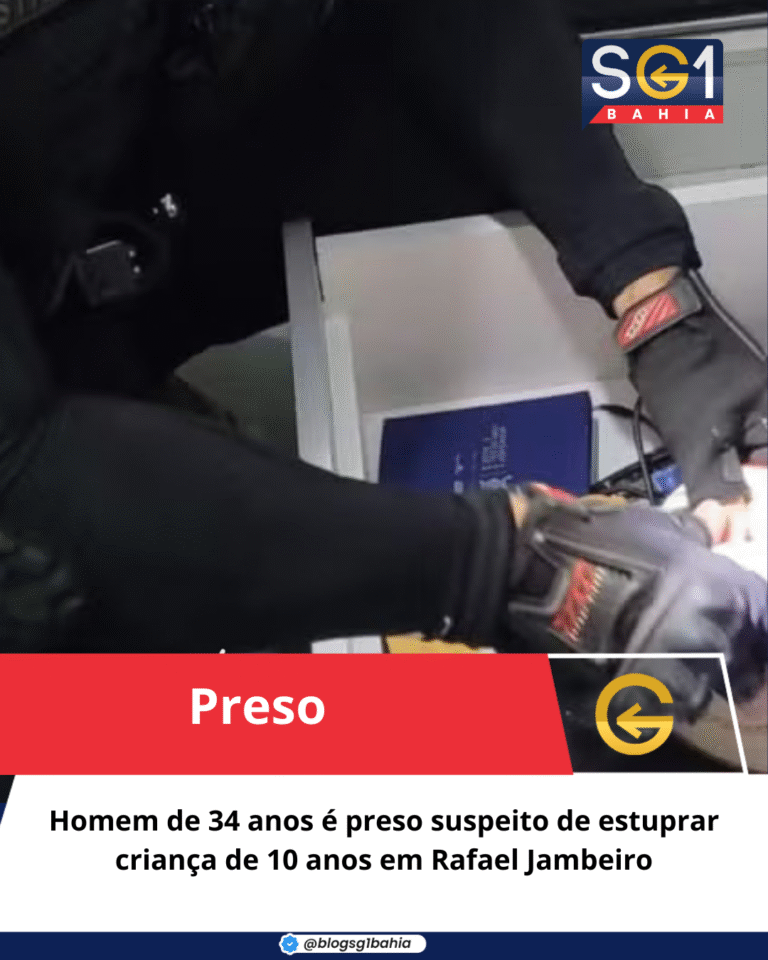 Homem de 34 anos é preso suspeito de estuprar criança de 10 anos em Rafael Jambeiro Um homem de 34