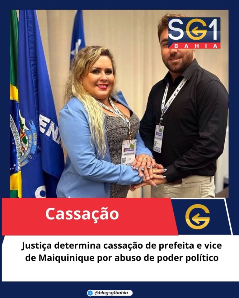 A Justiça Eleitoral determinou a cassação da prefeita de Maiquinique, Valéria Silveira (PV), e do vice, Kayke Jardim (PSD), no
