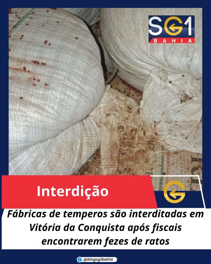 Quatro fábricas de temperos foram interditadas pela Vigilância Sanitária em Vitória da Conquista, no sudoeste da Bahia, depois que fiscais encontraram fezes de ratos nos locais. As ações ocorreram na última sexta-feira (26), após denúncias de consumidores e vizinhos. Os estabelecimentos seguem fechados nesta terça-feira (30).