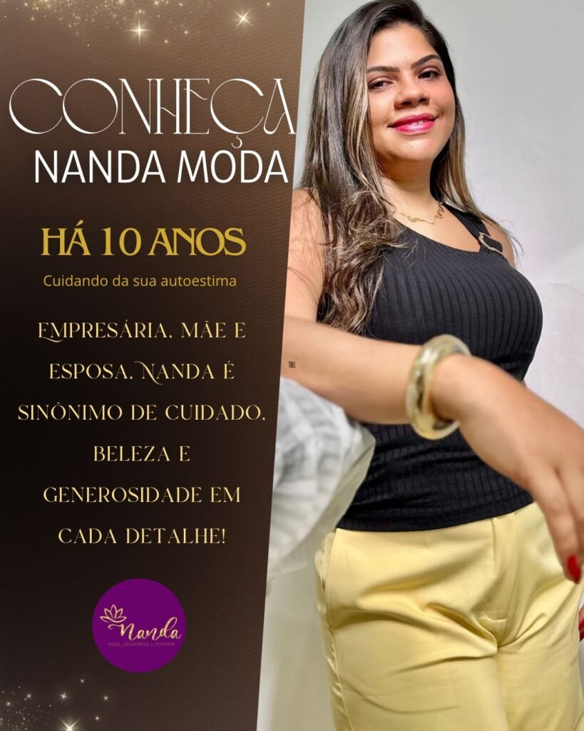 Além de transformar olhares, Nanda também inspira confiança e elegância através da sua loja de roupas e acessórios masculinos e femininos, onde cada peça é escolhida com carinho, qualidade e muito bom gosto.
