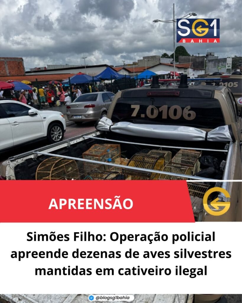 Uma operação da Polícia Militar realizada na manhã deste sábado em Simões Filho, na Região Metropolitana de Salvador, resultou na apreensão de dezenas de aves silvestres que eram mantidas ilegalmente em cativeiro. A ação integra o combate ao tráfico de fauna, prática que permanece entre os crimes ambientais mais recorrentes na Bahia.